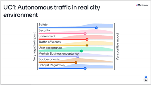 After a short presentation of the SHOW project by Matina Loukea from CERTH/HIT, two interactive sessions were organised. One interactive session focused on the prioritisation and optimisation of the SHOW Use Cases, where participants had the opportunity to provide their feedback through a voting App and through discussion, emphasising the safety, environmental and traffic efficiency parameters of the Use Cases related to autonomous traffic in real city environments.